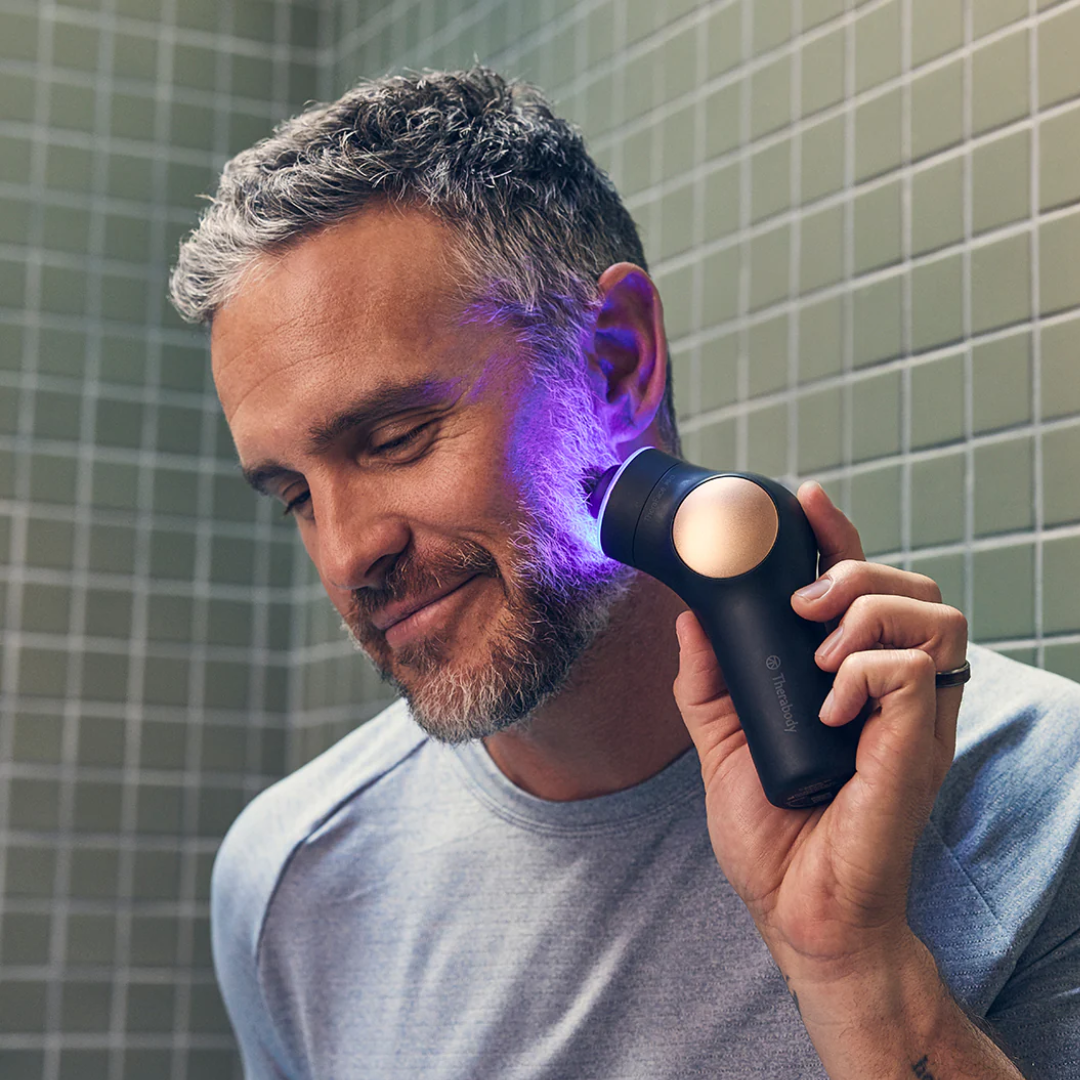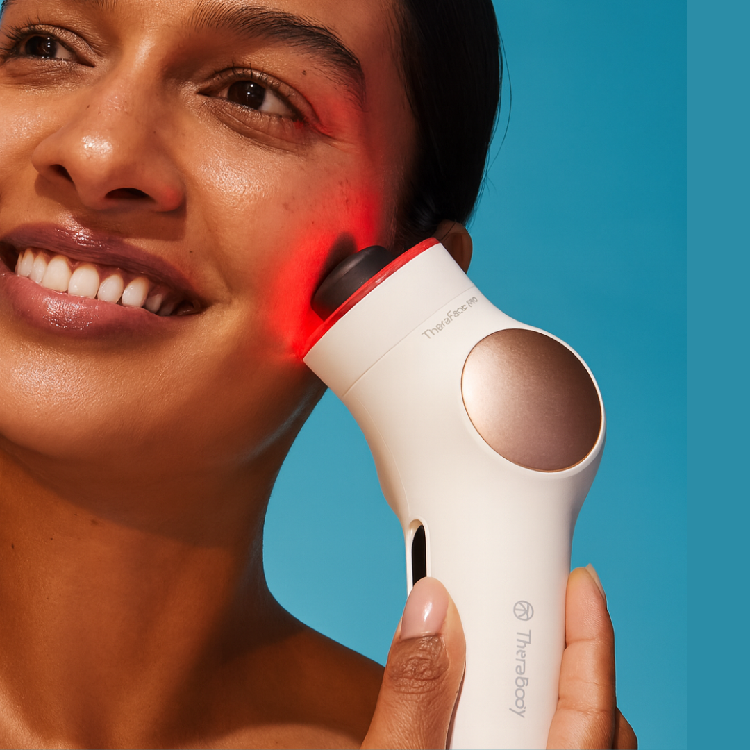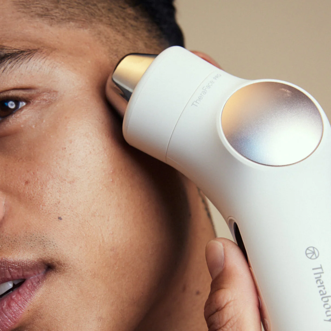 يعمل جهاز TheraFace PRO، المجهز بالقرع الطبى، على استرخاء عضلات الوجه ويخفف من القلق ويعزز الدورة الدموية لبشرة أكثر صحة وإشراقًا.