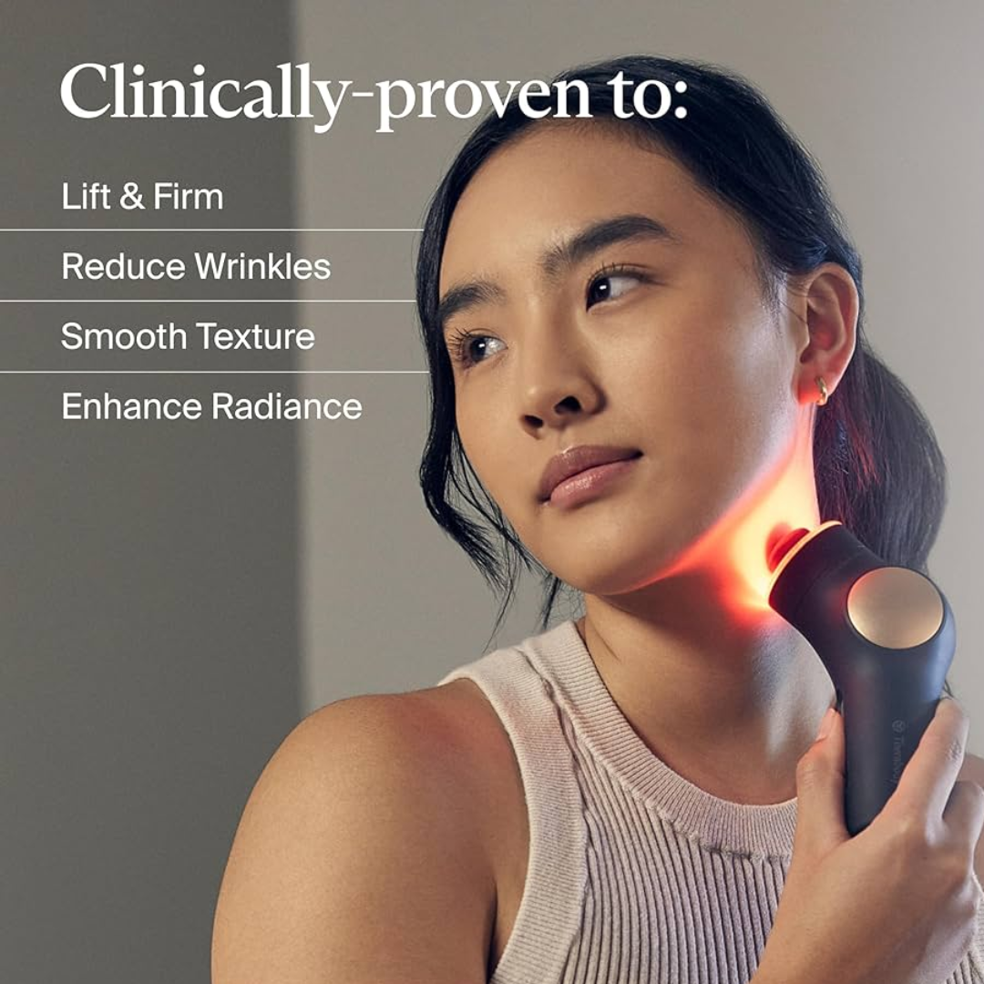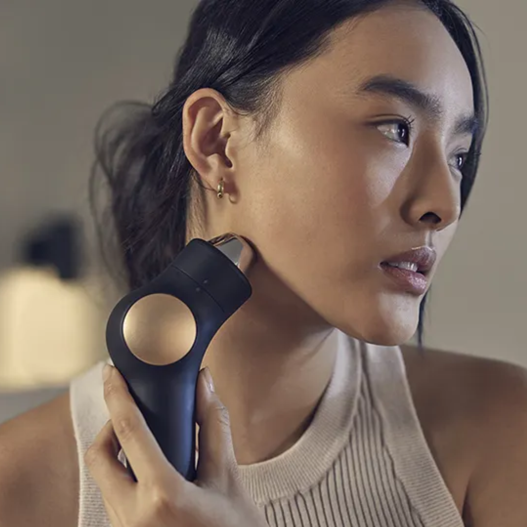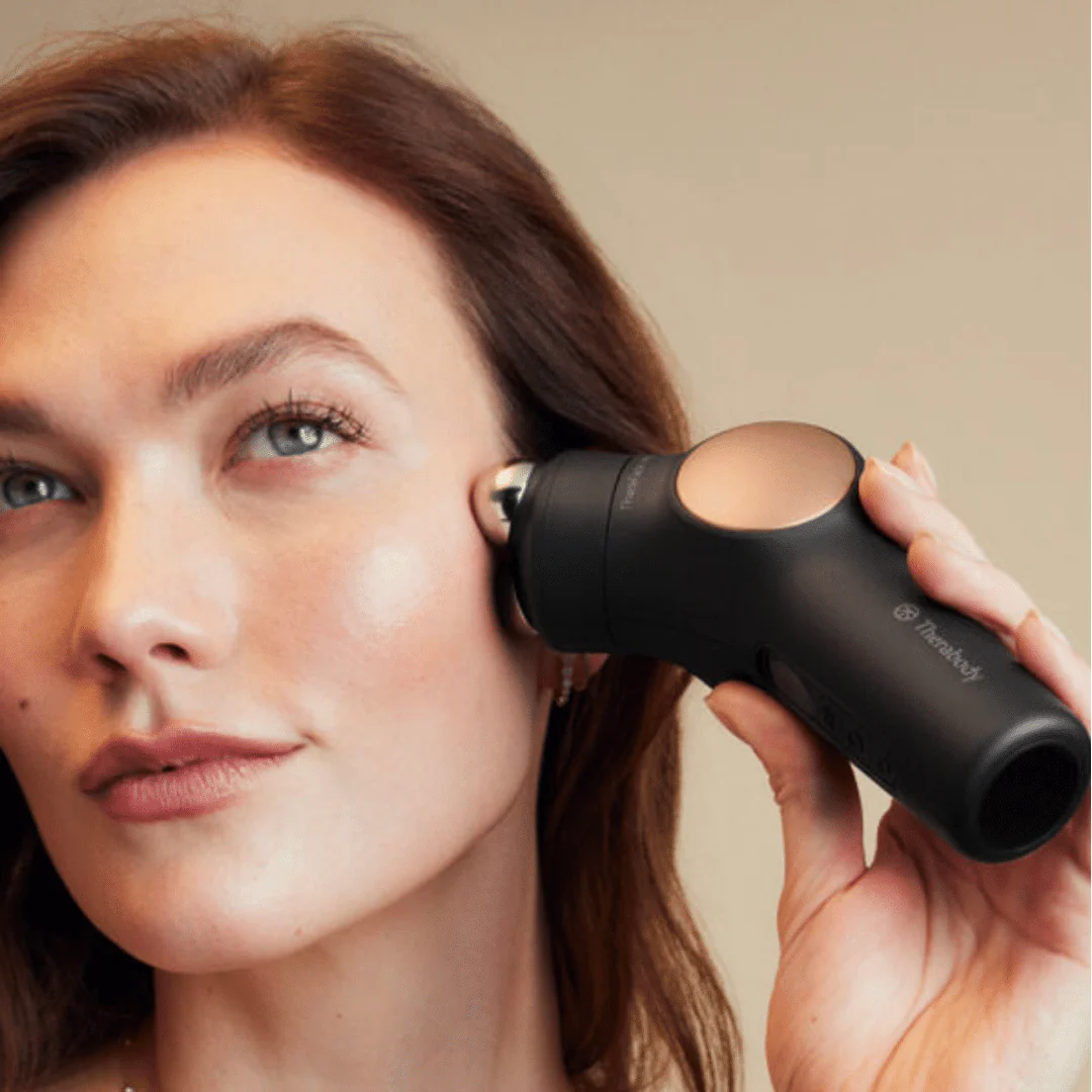 يعمل جهاز TheraFace PRO، المجهز بالقرع الطبى، على استرخاء عضلات الوجه ويخفف من القلق ويعزز الدورة الدموية لبشرة أكثر صحة وإشراقًا.